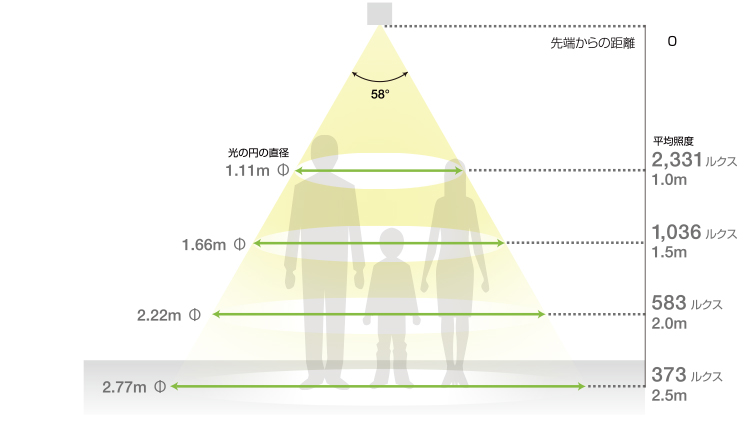 「ひまわりAS」から発せられる光は、配光角58度の光です。