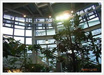 渋谷区ふれあい植物センターは、近隣にある渋谷清掃工場の還元施設として建設され、ごみの焼却により発生したエネルギーを供給されている植物園です。園内には熱帯植物を 中心に約200品種の植物が茂っており都会のオアシス的建物として利用されています。「ひまわり」は建物3Fの屋上に集光機を設置し、園内吹抜け部の照明として植物の維持育成に役立てられています。